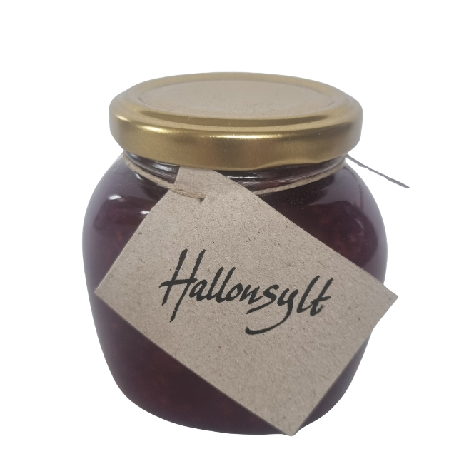 En mycket smakrik hallonsylt gjord på våra mörka hösthallon och från en odling i Strömstad. En kunds kommentar ”Ni vet väl om att ni har världen godaste hallonsylt?”
