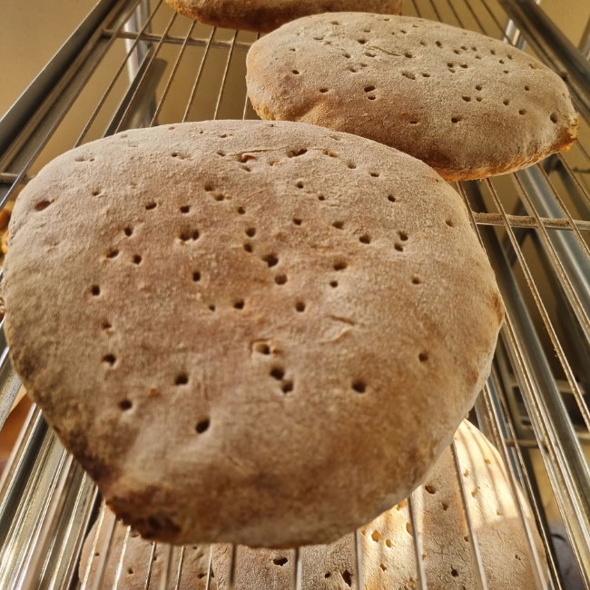 När vi bakar samma dag som utlämningen, blir det naturligtvis färska rågkakor.