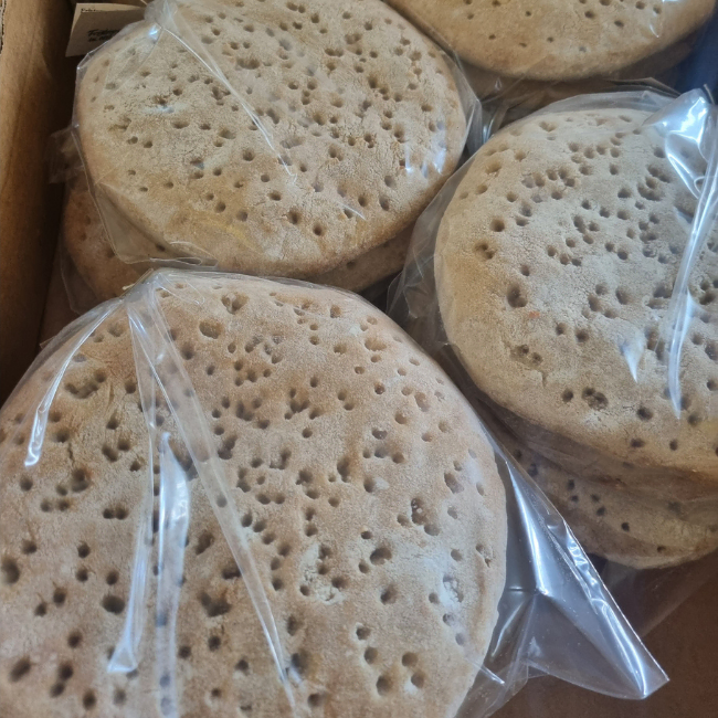 Vi fryser in dem färska och levererar dem i fryspåsar med 2 rågkakor i varje. Du kan antingen få dem hela eller delade i halvor. Skriv en anteckning om hur du föredrar dem.